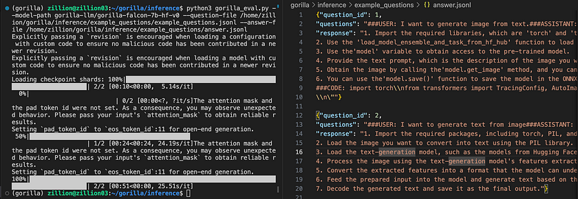 python3 gorilla_eval.py --model-path gorilla-llm/gorilla-falcon-7b-hf-v0 --question-file path/to/questions.jsonl --answer-file path/to/answers.jsonl