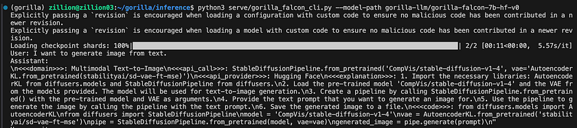 pip install -r requirements.txt- Launching Gorilla Using the CLI: Finally, run the Gorilla CLI with the specified model. This command starts the local server, allowing you to interact with Gorilla through the command line interface: