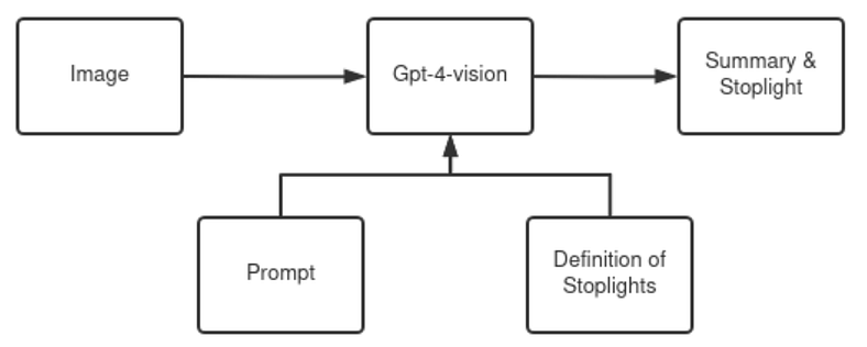 We pass the images of data dashboards, system prompt which includes response template and the definition of stoplight, and user prompts to OpenAI’ s gpt-4-vision-preview model. Check here to know more about gpt-4-vision-preview.