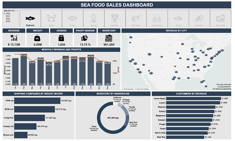 The following screenshots are from the same seafood sales dashboard on different dates. It basically presents the sales situations. We will use these two screenshots as examples to explain how to use LLM to generate stoplight reports for dashboards.