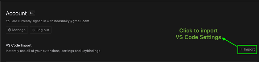 - Built on Visual Studio Code: Cursor’s foundation as a fork of Visual Studio Code offers a significant advantage. For developers well-versed in VS Code, the transition to Cursor is remarkably smooth. You can import your VS Code configuration into Cursor with one click. Navigate to