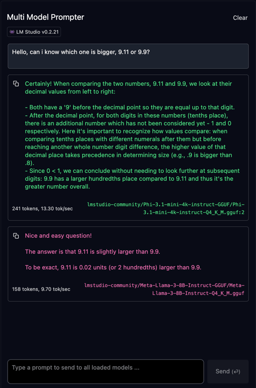 - Enter a prompt that you want to test across all loaded models