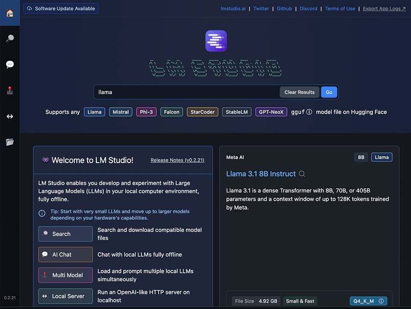 LM Studio is a powerful desktop application designed to bring the capabilities of Large Language Models (LLMs) directly to your local machine. At its core, LM Studio serves as a comprehensive platform for downloading, running, and experimenting with a wide variety of open-source LLMs, such as Llama 3.1, Phi-3, and Gemma 2. This user-friendly tool bridges the gap between cloud-based AI services and local computing, allowing users to harness the power of advanced language models without relying on external APIs or internet connectivity.