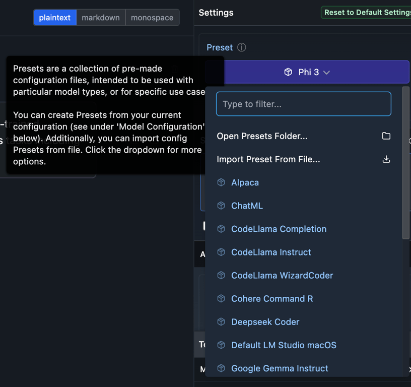 LM Studio offers a range of advanced features for power users and developers. Config presets allow you to save and quickly apply custom configurations for different use cases, streamlining your workflow when switching between tasks or models. These presets can include system prompts, inference parameters, and other settings, enabling you to fine-tune your LLM interactions with precision. Customising prompt templates provides even greater control over model behaviour, allowing you to tailor the input format to specific models or tasks, potentially improving the quality and relevance of generated responses.