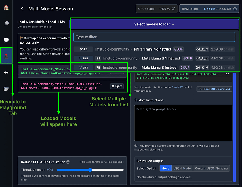 LM Studio’s Multi Model Sessions feature enables users to load and interact with multiple language models simultaneously, each with custom settings. This powerful capability allows for direct comparison of model outputs, efficient experimentation, and the creation of ensemble systems. Users can access these models via API or the Multi-Model Prompt UI, providing a unique environment for in-depth LLM analysis and leveraging the strengths of various models in a single session.